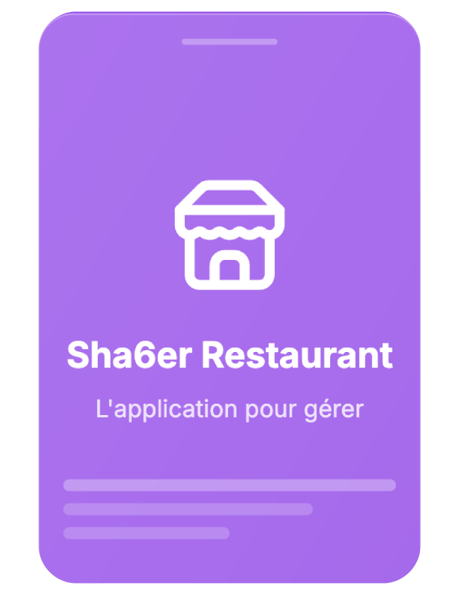 Chaque acteur de l'écosystème Sha6er dispose de son application dédiée, conçue spécifiquement pour répondre à ses besoins et optimiser son expérience.